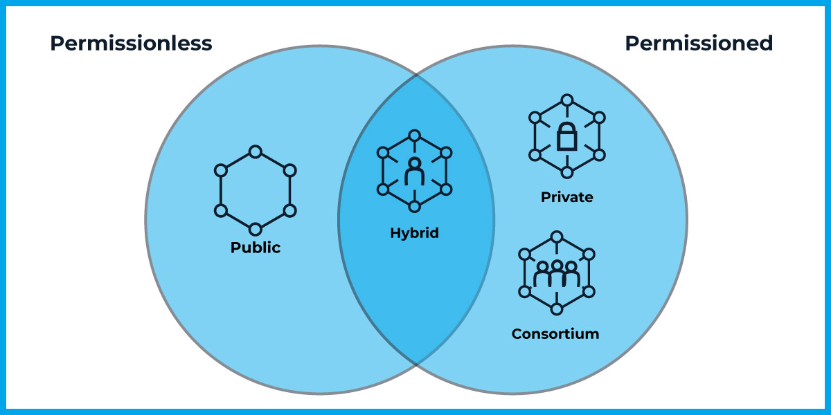 Now that we understand the differences between the permissioned and permissionless models of blockchain, we can now take a look at the specific types of blockchain: